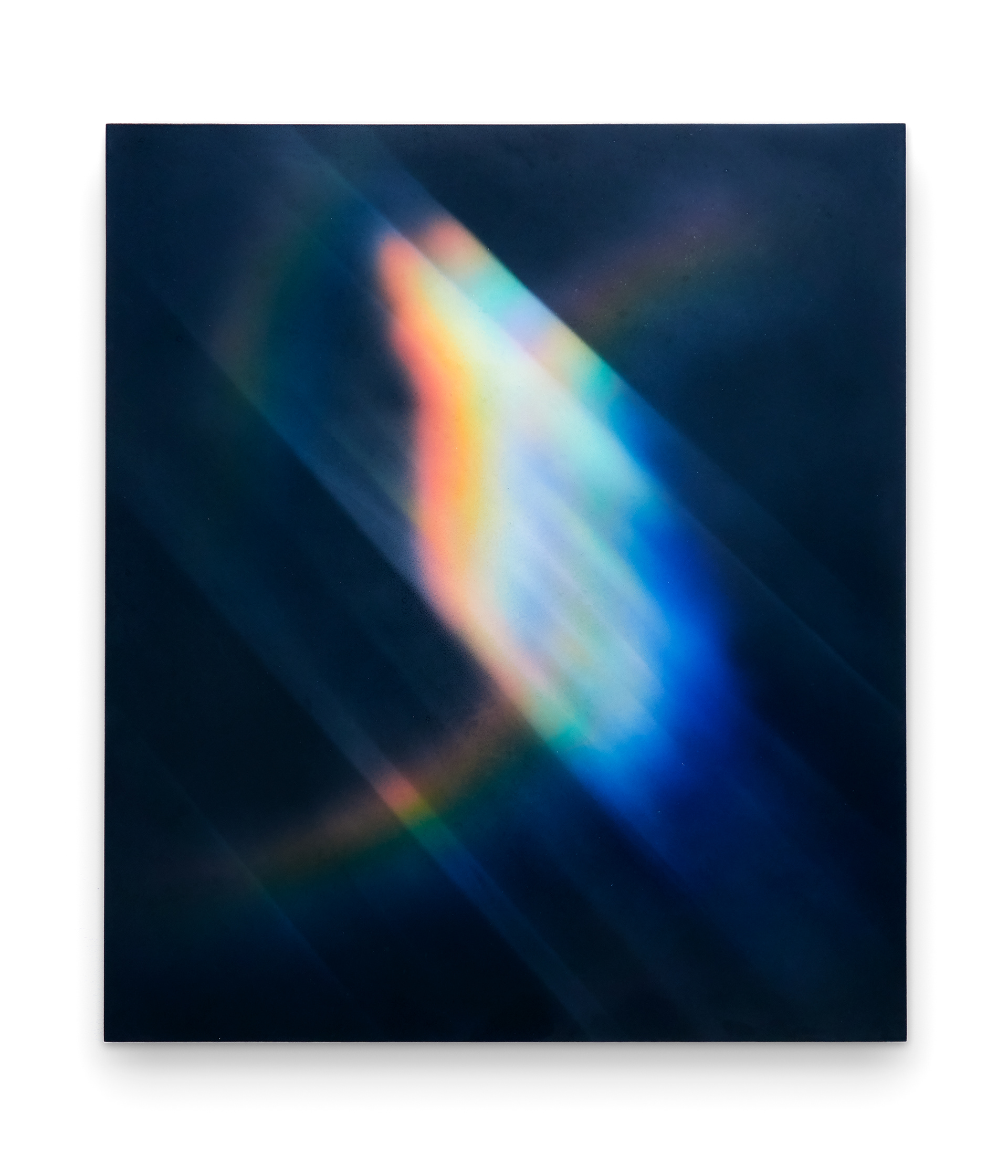 Hyvönen continues merging sculptural elements in her painting process. This time by turning her painterly gaze to the natural world. With the exhibited series she captures the momentary joy of light erupting on a surface, touching it with a prism. She finds her references from social media to employ a selection of experiences. For Hyvönen, light’s metaphors are a multitude. Whereas the spectrum can form upon a heavily bruised skin, as in Roller Derby Kisses, Hyvönen is aware of the weight of its connotations. Can you paint a rainbow without touching upon – any of – its denotations? Regardless, one is clear. Light can break though anything. Even the darkest of the hour.